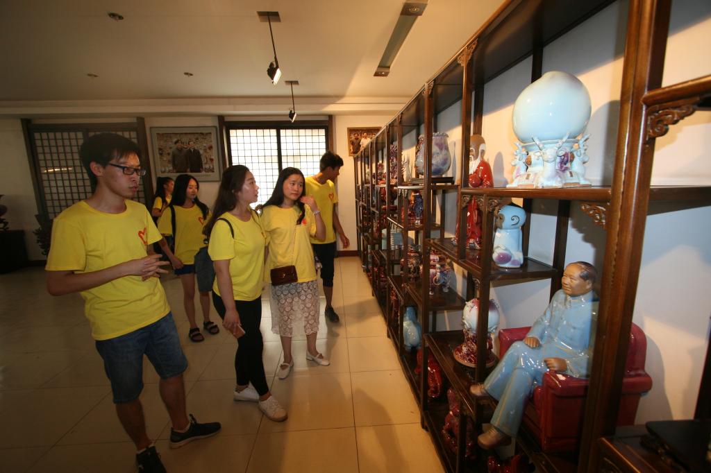 上午11时,实践队员一行在系辅导员张留锋老师带领下,来到位于神垕古镇解放路西段的孔家钧窑展馆。走进展馆展厅,一排排近期烧制出炉的精美孔家钧瓷展现在实践队员面前。大家在展馆工作人员引导下,依次进行仔细参观,并就钧瓷的制作工艺等问题,向他们进行了求教。通过参观调研,大家对孔家钧瓷得以有了全面细致的了解,切身感受到钧瓷艺术的独特魅力和钧瓷大师的高超技艺。