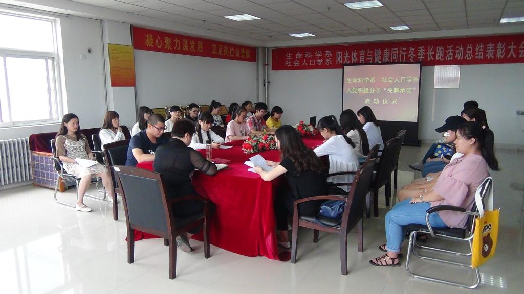 5月24日中午,生命科学系、社会人口学系第45期入党积极分子“亮牌承诺”活动启动仪式在知行楼501室举行。系党总支书记王朝霞出席并讲了党课,本期全体入党积极分子参加。活动由唐玮主持。